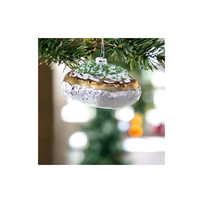 - Durable Quality: Made with care from glass, this baked potato ornament is as durable as it is delightful, ensuring it lasts for seasons to come.