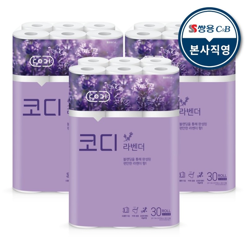 Cody Lavender 30m 30 rolls 3 packs / 코디 라벤다 30m 30롤 3팩