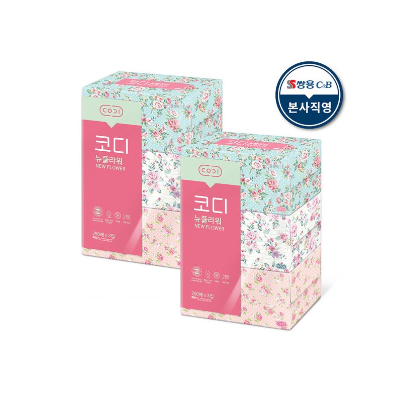 Cody New Flower 250 sheets x 3 pieces, 2 packs / 코디 뉴플라워 250매x3입 2팩