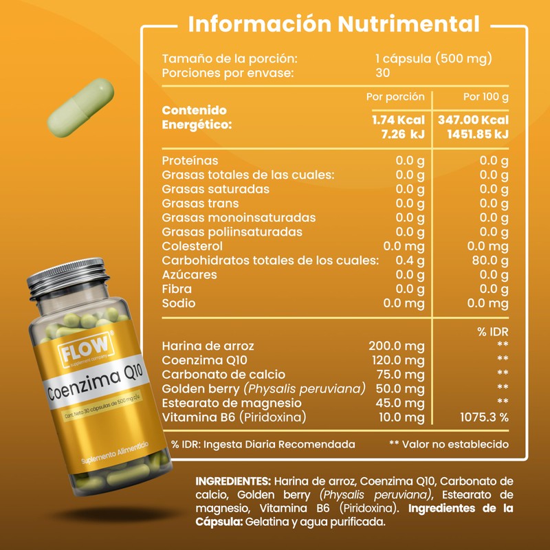 Coenzima Q10 30 Capsulas de 500 mg - Suministro para 1 mes - Suplemento alimenticio antioxidante - Flow Supplements