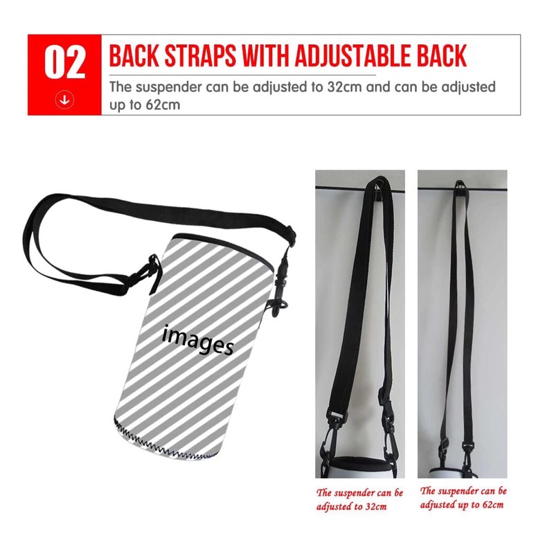 - Size:8cm*8cm*19cm/(3.1*3.1*7.5inch)fit 500-750ml water bottle.The neoprene stretches to fit most bottles.Detachable belt buckte convenient,can adjust the belt buckle quickly and freely.The suspender can be adjusted to 12.59 inch and can be adjusted up to 24.4 inch.