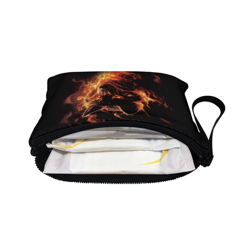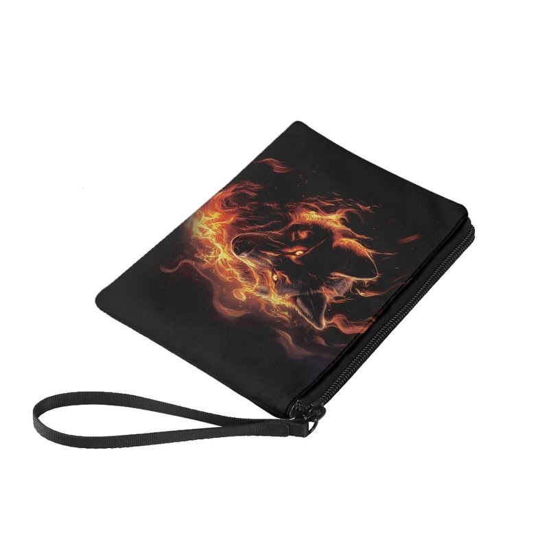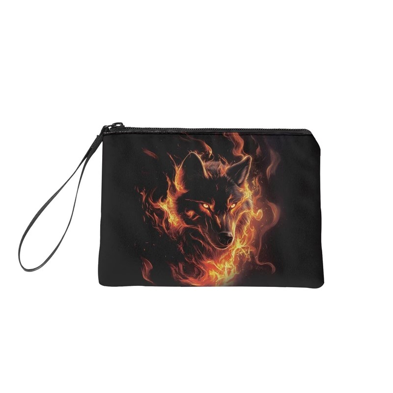 COEQINE Wolf Coin Purse for Men Boys, Cool Animal With Fire Pattern PU Pattern Zipper Coin Purse Portable Coin Purse Mini Change Wallet for Women Coin Pocket Mini Flannel Case