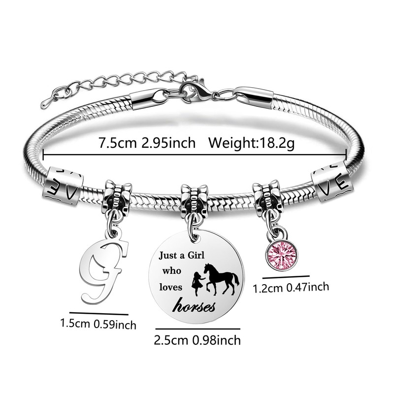 - Love horse gifts for girls:The charm bracelet lettering message:Just a girls who loves horse.