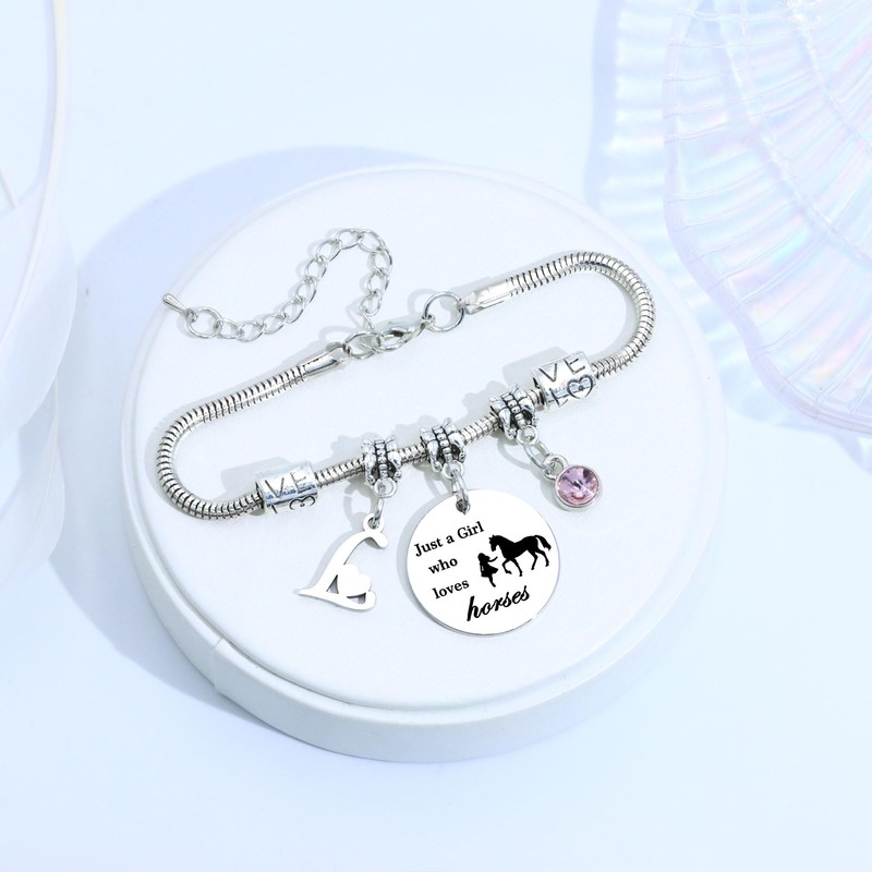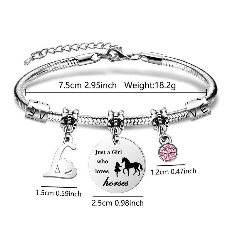 - Love horse gifts for girls:The charm bracelet lettering message:Just a girls who loves horse.