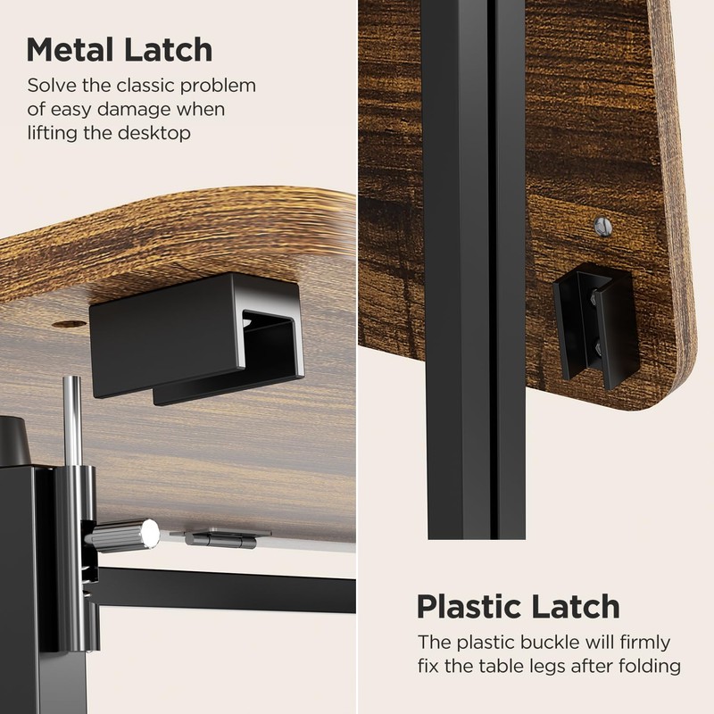 - 【Folding Table】Thanks to the convenient design of the metal spring lock, the table can be easily folded with one pull and one buckle, bidding farewell to the classic problem of easy damage when lifting the desktop; In addition, the table legs make a universal design, which can be installed on either side without distinguishing left or right leg.