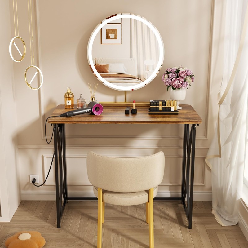 - 【Built-in USB Port】This white gold desk comes with a power strip that includes 2 standard plug sockets and 2 USB ports, allowing you to sit at your desk and use your computer within easy reach and charge your phone, tablet, or other electronics.