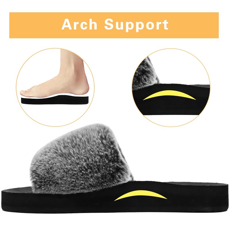 - Soft and fluffy women's slippers: the insole of the fur slippers is ergonomically designed with arch support, improves walking comfort and reduces pressure when walking.