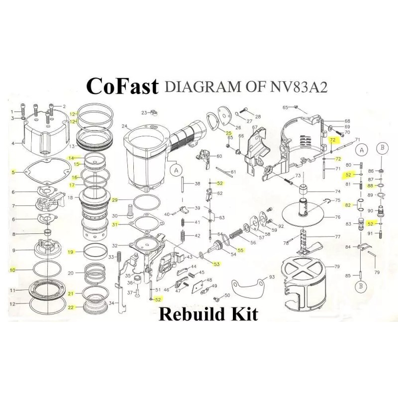 CoFast® Rebuild Kit Aftermarket Hitachi NV83A2 A3 O-Rings Gaskets Piston Bumper