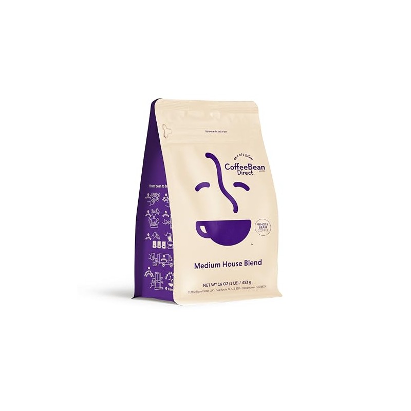 Coffee Bean Direct Medium House Blend, Whole Bean Coffee, Medium Roast, 1 Pound Bag (Pack of 1)