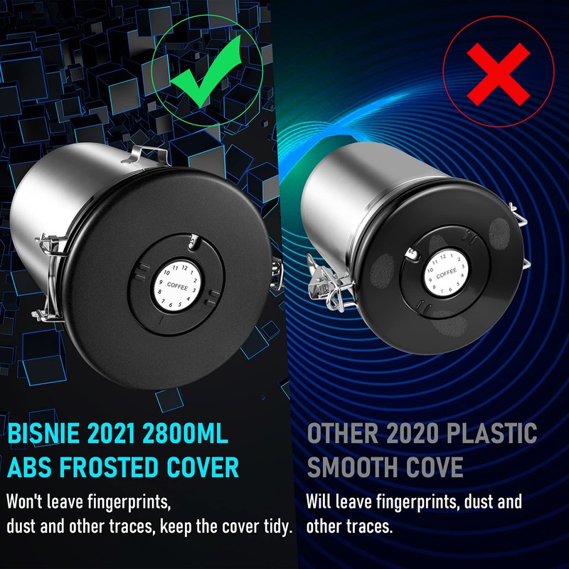 - Coffee canisters airtight 1 kg beans – many customers complain that the coffee bean containers on the market cannot hold their 1 kg coffee beans. In order to solve the customer's problems and meet the customer's needs, we have specially designed this 2800ml coffee bean container that can perfectly hold your 1kg coffee beans. If you're still having trouble finding a 1kg coffee bean container, it's time to know BISNIE 1kg coffee bean container.