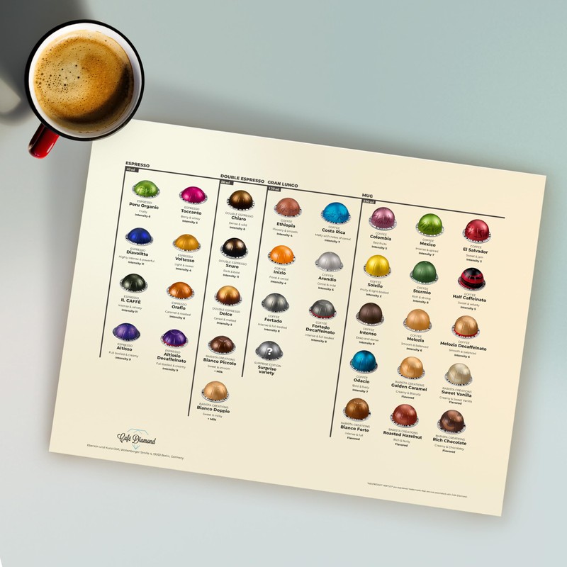 - Pure coffee fold: 25 randomly selected NespressoVertuo coffee capsules from the Coffee+, Espresso, Coffee & Barista Creations series - not every series is included in each set. Not all varieties of the back are included in the sample package. This is a selection.