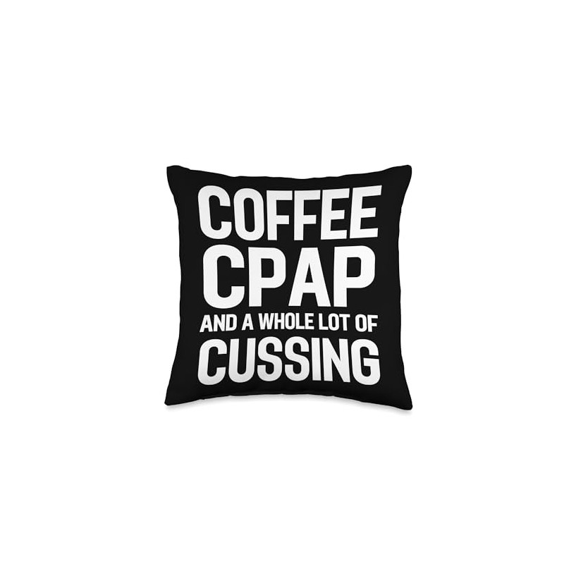 Coffee CPAP and Cussing Funny Obstructive Sleep Apnea Throw Pillow