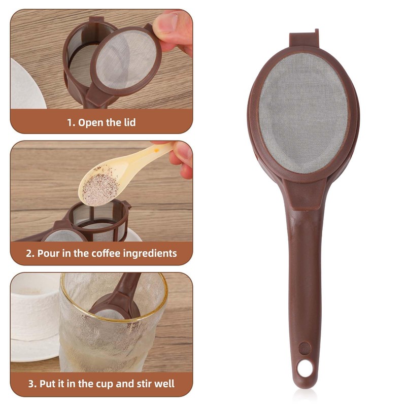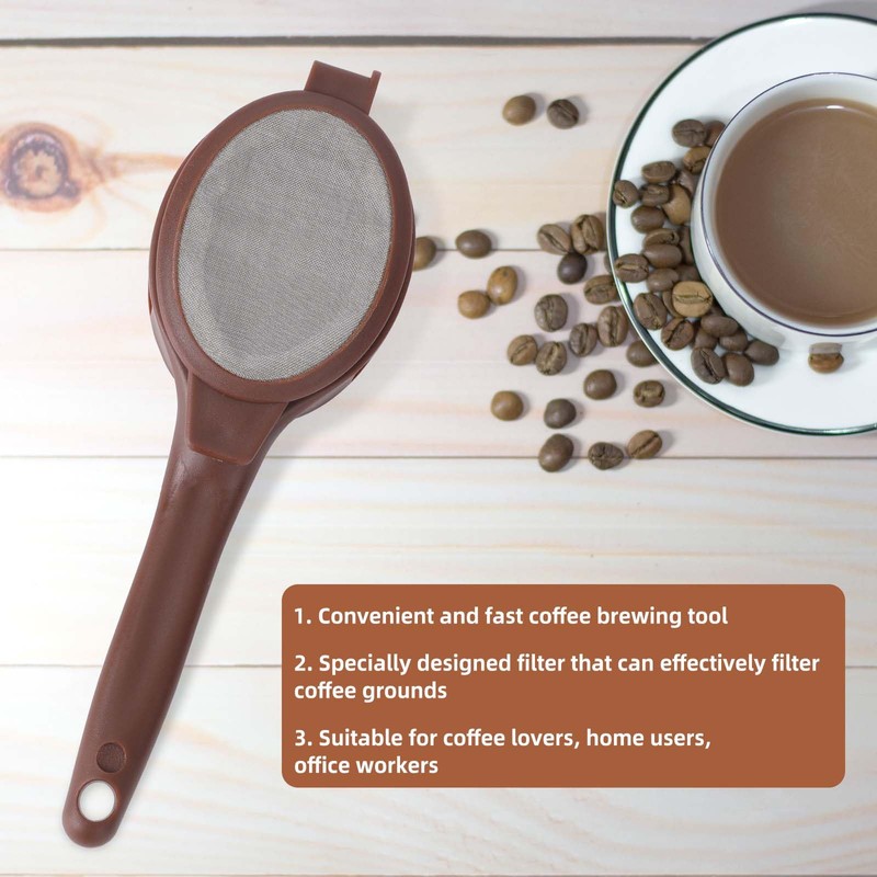 Coffee Filter Spoon, Fine Mesh Tea Strainer Scoop with Long Handle Practical Reusable Coffee Infuser Brewing Funnel Tool for Home & Office (Brown)