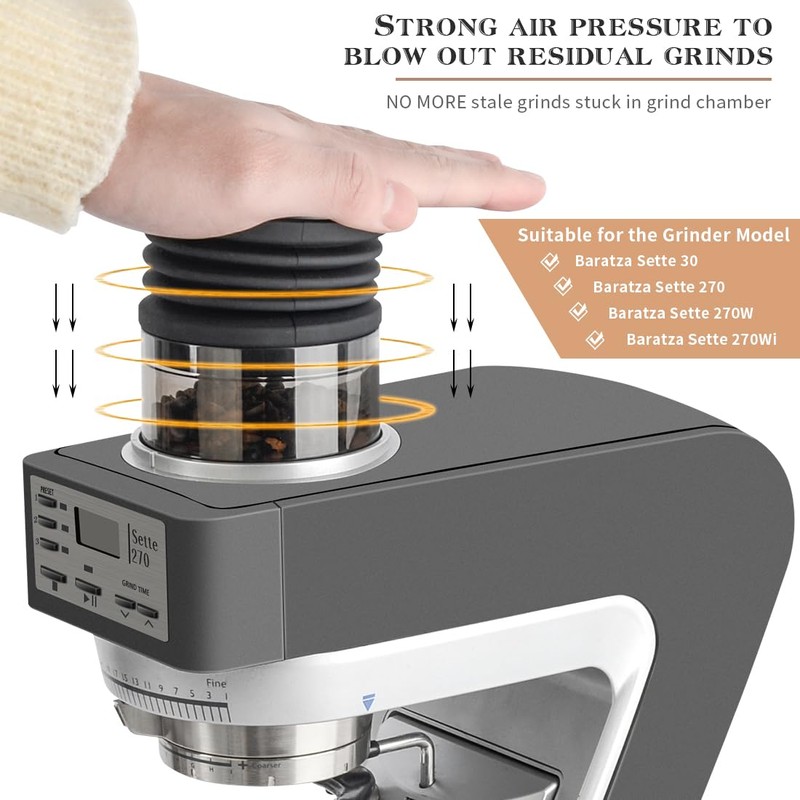 Coffee Grinder Cleaning Tools Single Dose Hopper and Silicone Bellows Clear PC Advanced Add-On Part Compatible with Baratza Sette Grinder