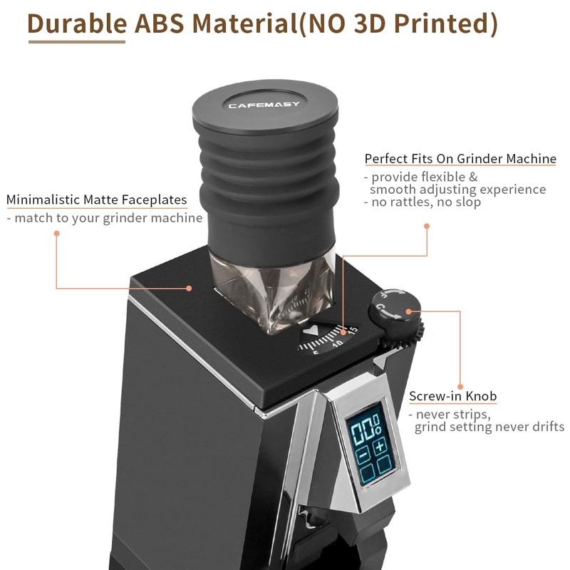 - Premium Material - UNLIKE 3D printed, this grind setting dail is made of durable ABS, provide flexible & smooth adjusting experience, no rattles, no slop. The screw-in knob prevent stripping, ensure grind setting never go drifts.