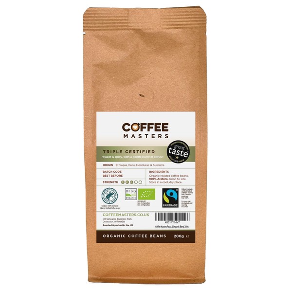 Coffee Masters Triple Certified Organic Blend Coffee Beans 200g