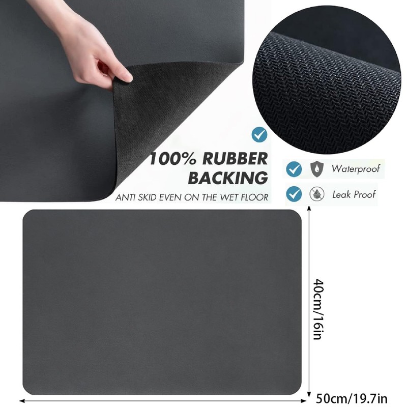 Coffee Mat 15.7*19.7 Inch, 50*40cm Dish Drying Mat for Kitchen Counter Bar, Stain Hiding Rubber Backed Absorbent Bar Mat Pad, Dark Grey (5)