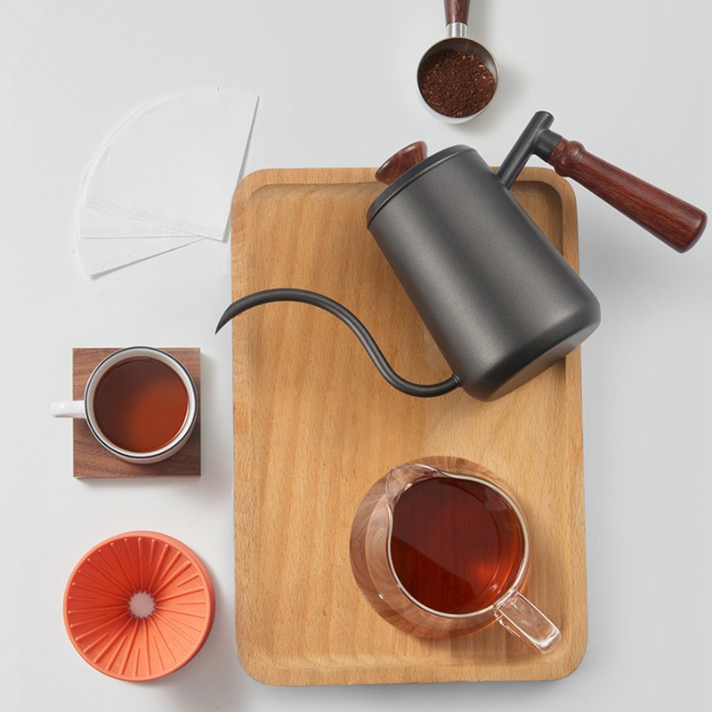 Coffee Pour Over Kettle 304 Stainless Steel Food Grade Gooseneck Wooden Handle Ergonomic Design Pour Over Coffee Maker350ml