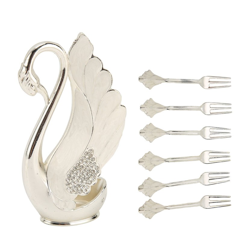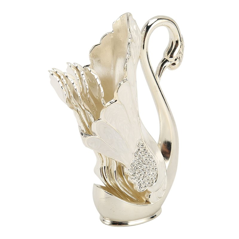 Coffee Spoon Holder Coffee Dessert Spoon Set Alloy Swan Base Holder Spoon Organizer with 6pcs, Modern Ice Cream Spoons Teaspoons Coffee Dessert Flatware(Fork)