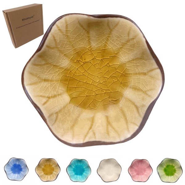 Coffee Spoon Rest for Coffee Bar Accessories, Small Spoon Rest for Coffee Station, Flower Ceramic Tea Spoon Holder for Teaspoon Rest for Tea Spoon, 1 PC (Ice Cracks, Fall Yellow)