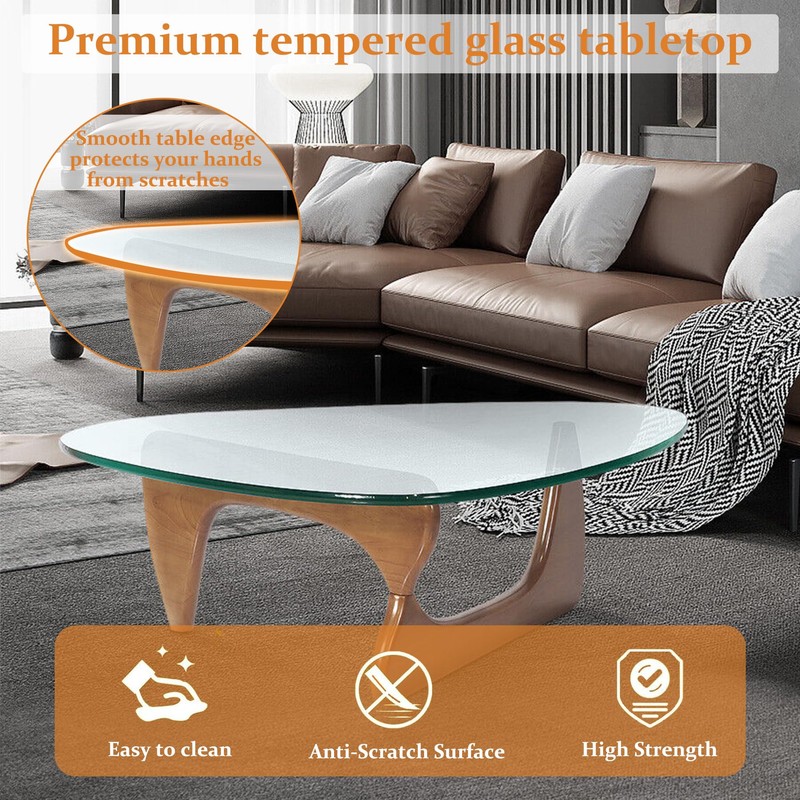 - đModern minimalist home: This triangular coffee table has a minimalist design with a clear glass top and elegant wooden base for a fresh mid-century look. end table living room perfect addition to any living room, reception room, office