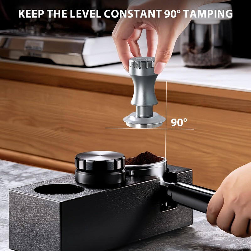 - ☕【Design Upgrade】Compared to the existing spring-loaded coffee tamper 51mm on the market, this product adds a circular baffle; It ensures that the tamper is pressed down vertically to avoid tipping of the coffee puck surface due to the non-vertical angle of force; This reduces the formation of channelling; Perfectly vertical tamps even between different people