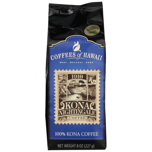COFFEES OF HAWAII Kona Nightingale Whole Bean Coffee, 8 OZ