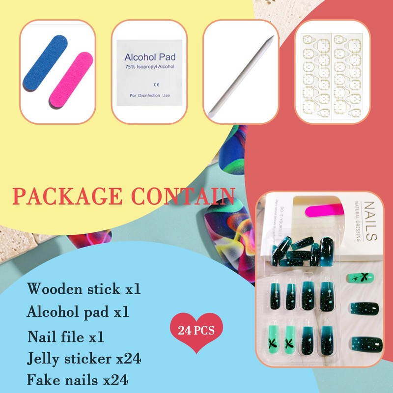 - 【Easy to use】Gradient green nails press ons with 24 self-adhesive can complete your favorite nail enhancement in 5 minutes without waiting at the nail salon. Some simple steps can help you achieve equally impressive professional results at home.