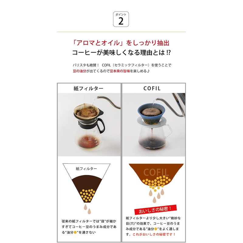COFIL fuji Ceramic Coffee Filter Dripper with Dedicated Base and Saucer, Blue 1390400501