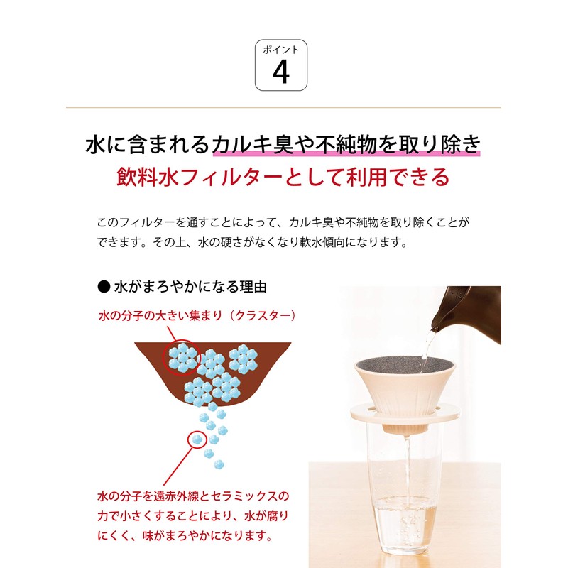 - Material: Filter: Porous ceramic, Dedicated base: Porcelain