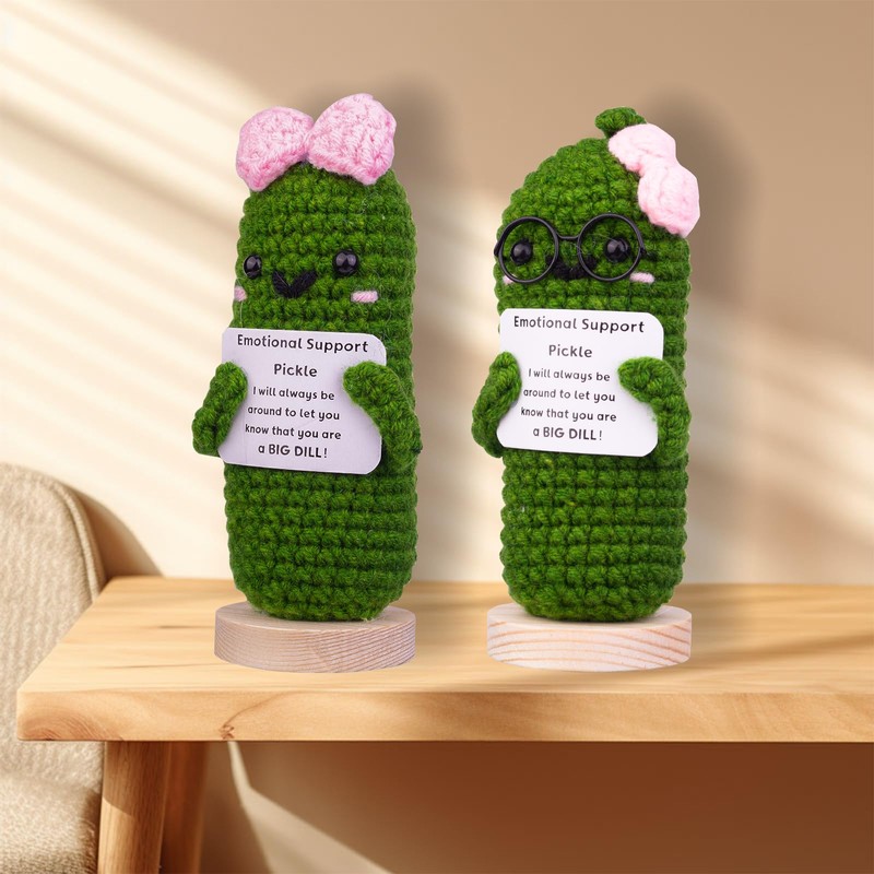 - 🥑Emotional Support Doll: Handmade emotional support pickle comes with an encouragement information card, providing encouragement and support whenever we feel lost or unhappy. When we feel stressed, sad, or nervous, this cute and funny knitted dill pickle will make us and our loved ones happy.