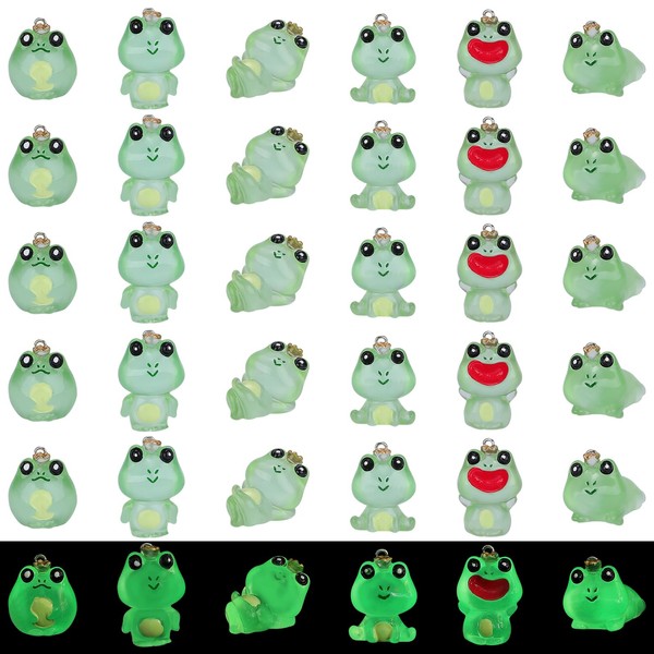 COGCHARGER 36Pcs Luminous Resin Frog Charms Glow in the Dark Mini Frog Charms Pendants Cute Animal Charms for Bracelets Necklace Earrings Jewelry Making Crafts, Resin Stainless Steel, No Gemstone