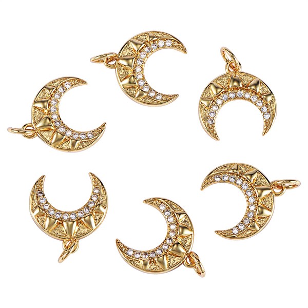 COGCHARGER 6 Pcs Brass Moon Cubic Zirconia Charm Pendants Brass Moon Charm Crescent Moon Charm with Jump Ring for Jewelry Earring Making