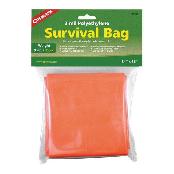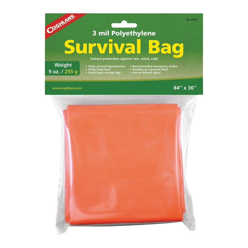 - Versatile bag can be used as emergency shelter, ground sheet, storage bag, or distress signal
