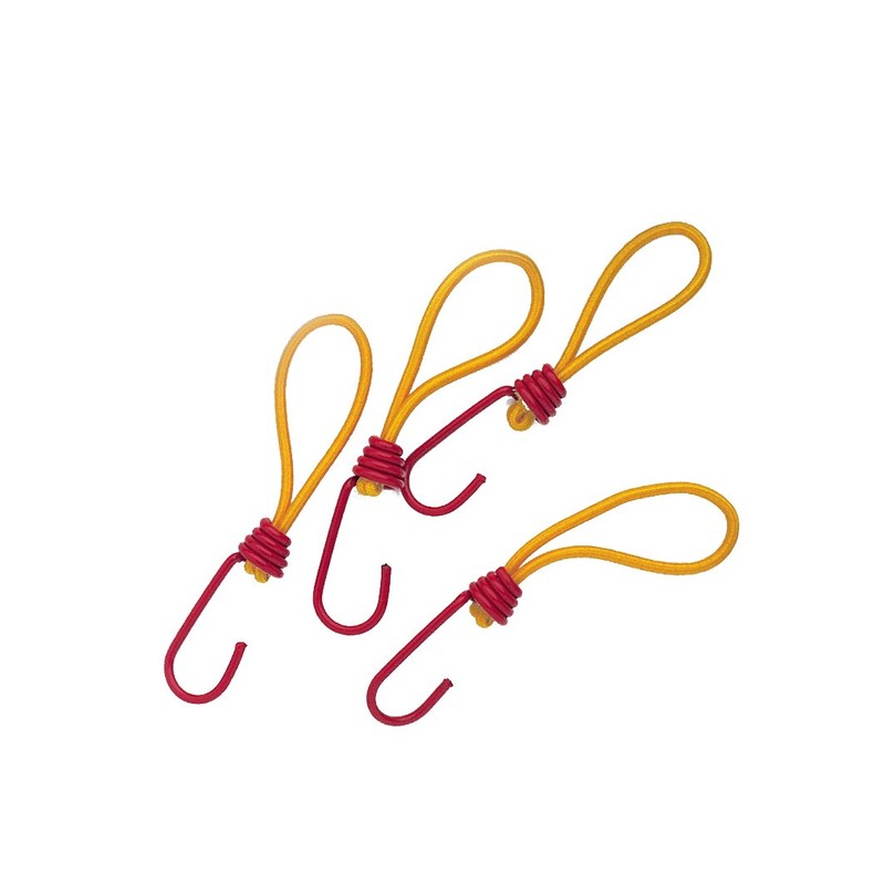Short Gummiösen, with plastic-coated hooks that allow you to, tent and tarpaulin elastic abzuspannen. Gentle and effective.
