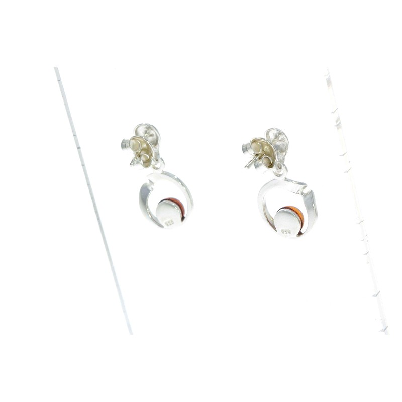 Cognac Baltic Amber 925 Sterling Silver Small Stud Drop Round Earrings GL147C