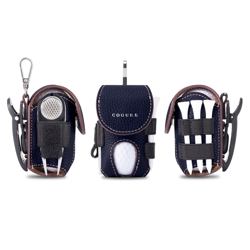 COGURE コグレ ゴルフボールケース 本革 メンズ レディース ボール2個収納 ティー収納 グリーンフォーク マーカー グローブホルダー 回転式クリップ ギフトボックス付き CopGBC-R 右腰タイプ ネイビー