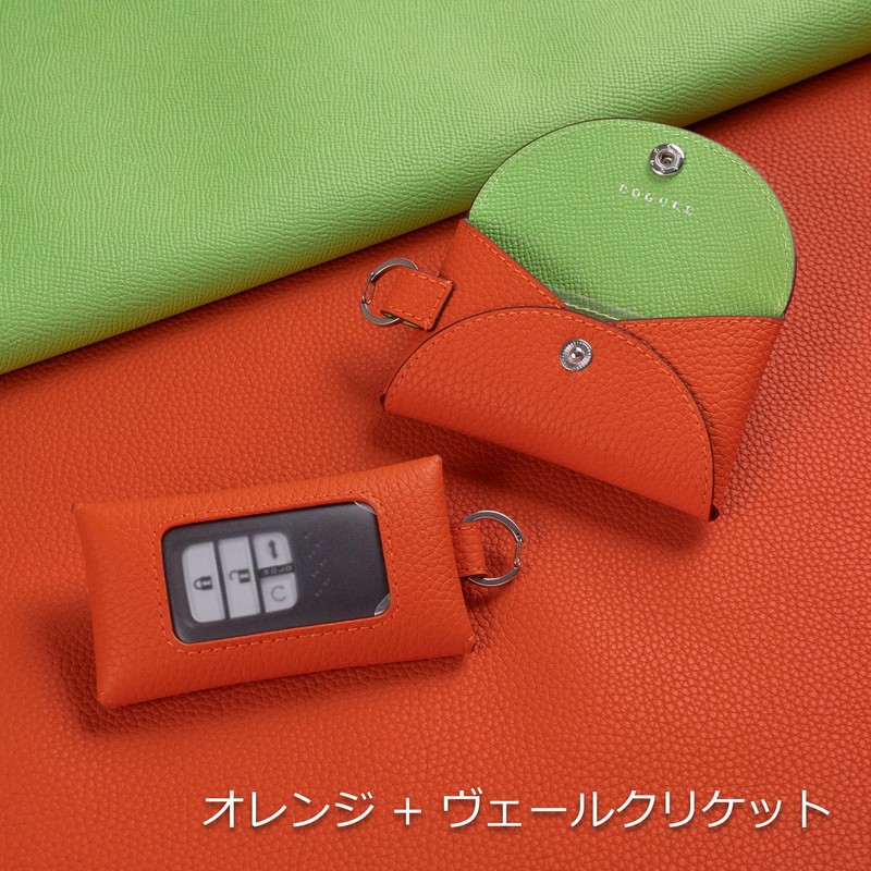 COGURE COSKC Smart Key Case, Genuine Leather, with Window, Carabiner Ring, Unisex, Gift Box, Orange + Veil Cricket
