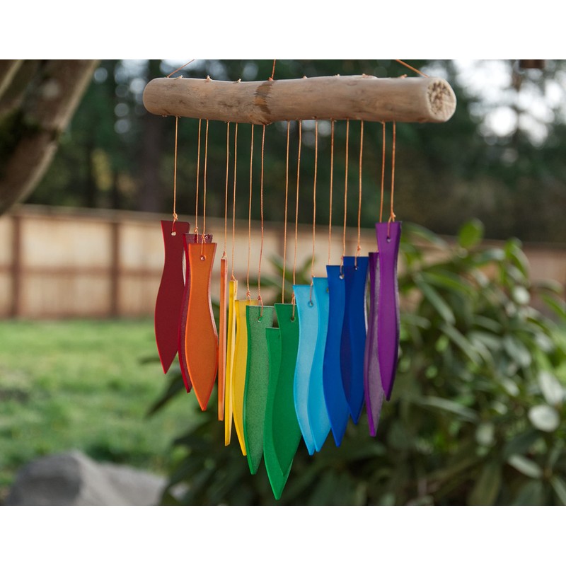 Cohasset Gifts Rainbow Fish Tumbled Glass Wind Chime - Sustainable Yard Art