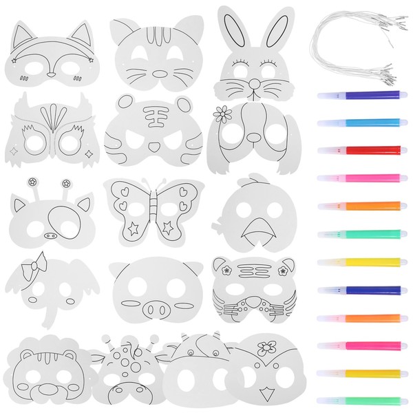 COHEALI 16pcs Animal Blank Masks for Painting Cute Paper Party Masks for Boys and Girls for Birthdays School Activities and Masquerades