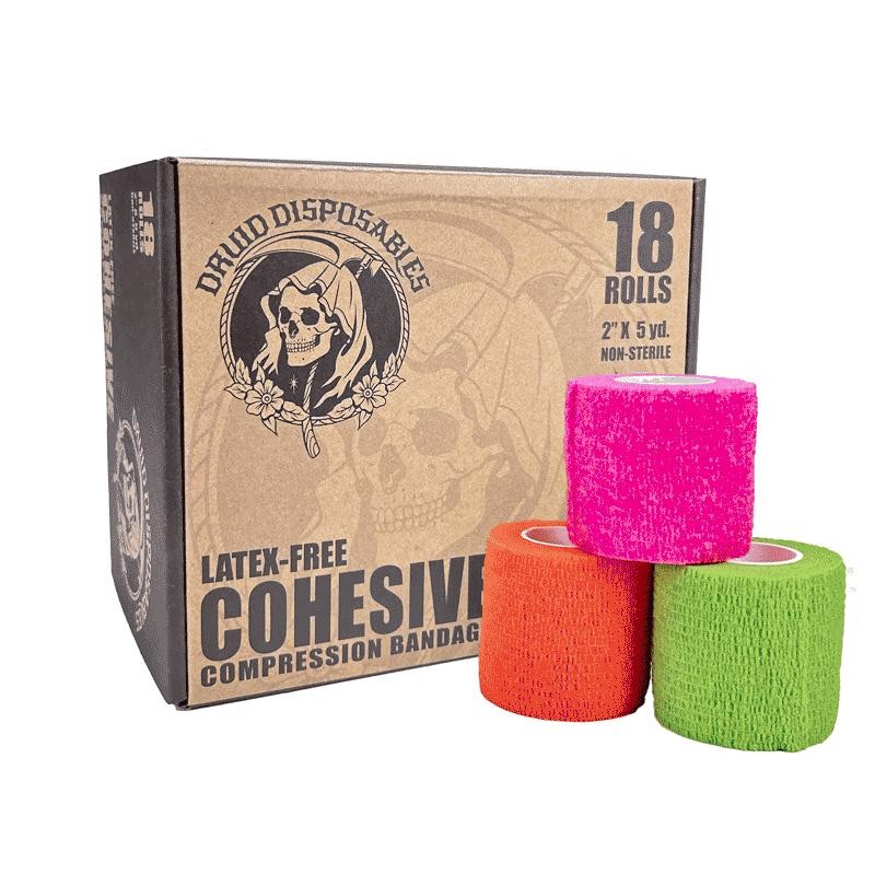Druid Disposables Latex-Free Cohesive Bandage is the ideal solution for secure, lightweight compression. This self-adhesive coflex bandage sticks to itself, not to skin or other materials, making it perfect for medical, tattoo, and personal use. Easy to tear without scissors, it won’t slip or lose its grip, ensuring reliable support during any procedure or healing process.