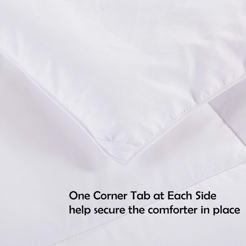 - 2.Box stitched and well distributed, with no concern for shifting or clumping filling. Exquisite hemming, no need to worry about filling leakage or loose thread. One corner tab at each side, help you secure the comforter in place.