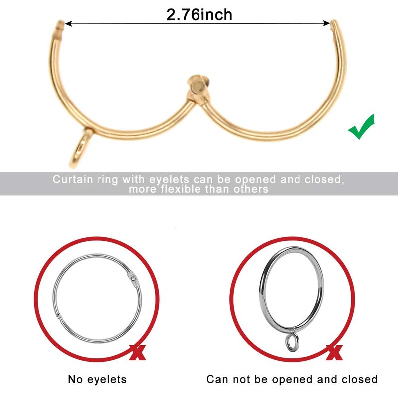 - WIDE APPLICATION: This curtain ring is applicable to a wide range of areas. The golden appearance is applicable to the decoration of the living room curtain and door curtain at home, as well as the hanging of the shower curtain in the bathroom.