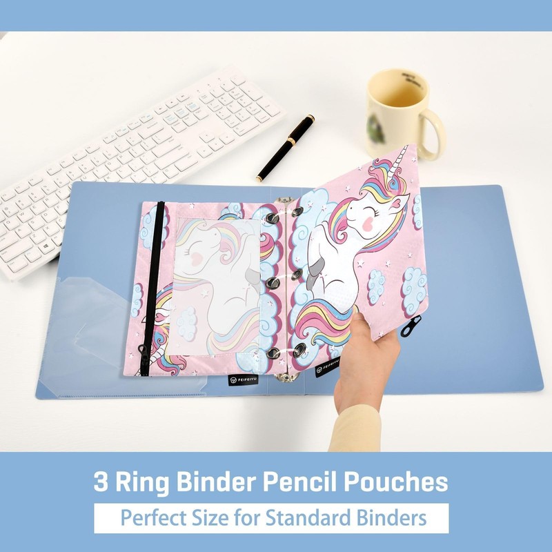 Coikll Beautiful Unicorn Pencil Pouch Fits Standard 3-Ring Binders, Zipper Binder Pencil Bag with Clear Window for Class Office 2 Pack
