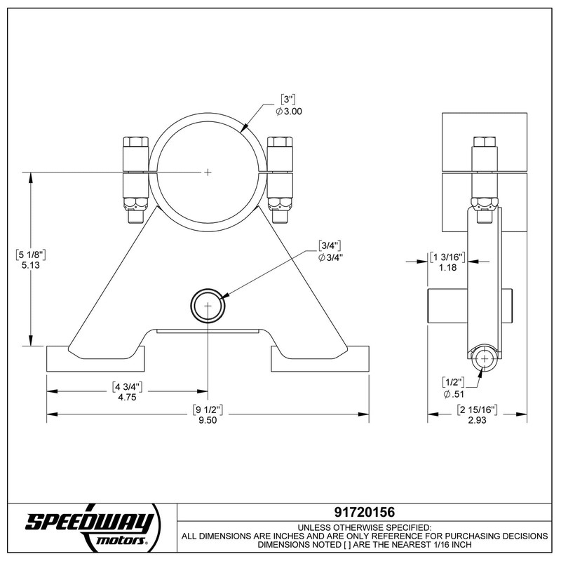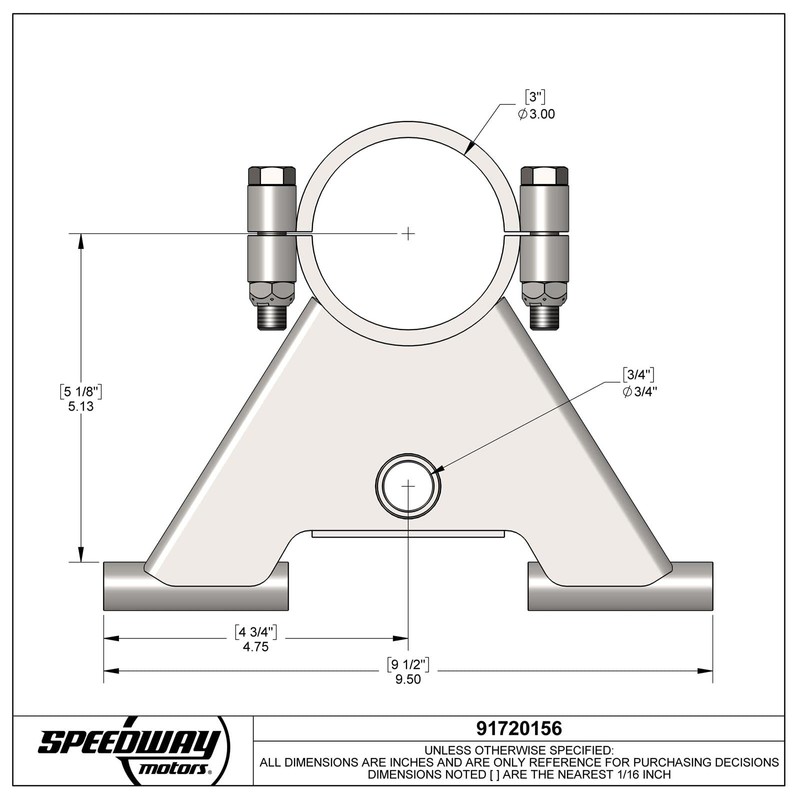 These coil/shocks lower link mounts locate strut tube to rear end housing. Mounts shock and slider assembly. Fits 3" axle tube. Clamp-on style. Notes Fits both LH and RH side. Center of bracket to trailing arm hole is 4", center to shock hole is 5.5". Fits 3" axle tube. Clamp-on. 3/4" mount.