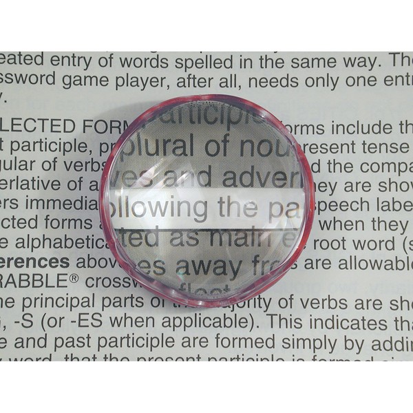 This Visual Tracking Magnifier has been specifically designed to aid those with Dyslexia and similar reading difficulties, as well as those with Low Vision. It helps the user concentrate their vision on individual words or sentences and removes the confusion caused by nearby text or pictures. Designed with a 7mm bright central viewing strip to improve contrast and aid saccadic eye movement by focusing the user's attention when reading. The Visual Tracking Magnifier is easily tracked across the page with its wide field-of-view and comfortable easy-grip rim. Winner of "Millennium Product" status, it is ideal for both school children and the elderly. Magnification (when laid flat on page): 1.7x Lens Diameter: 50.5mm Image Vergence: -4.0D Effective Focal Length: 52.90mm Field of View on Page:143mm x 104mm