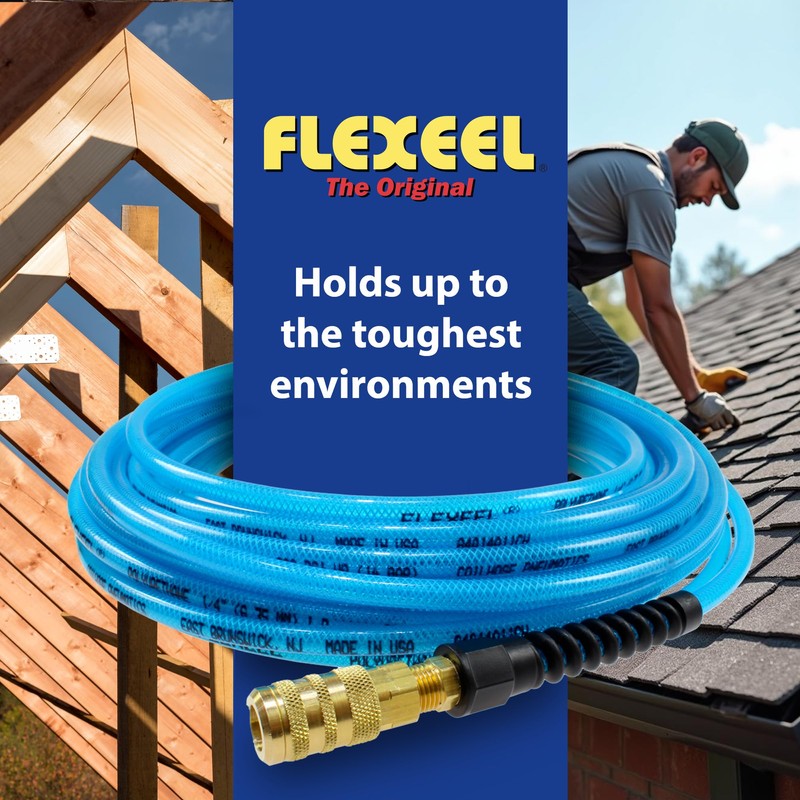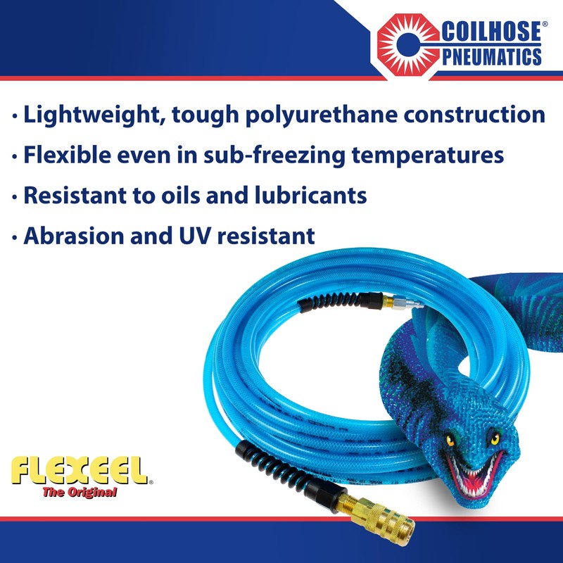 Coilhose Pneumatics PFE4100TS15X Flexeel Reinforced Polyurethane Air Hose, 1/4" ID, 100' Length with 1/4" Industrial Coupler & Connector, Transparent Blue