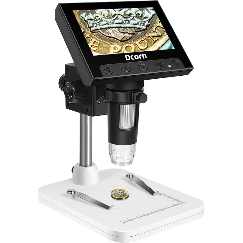 Coin Microscope, Dcorn 4.3" LCD Digital Microscope for Coin Collection Supplies,10X-1000X Coin Magnifier with 8 Adjustable LED Lights for Kids/Adults Coin Error Observation