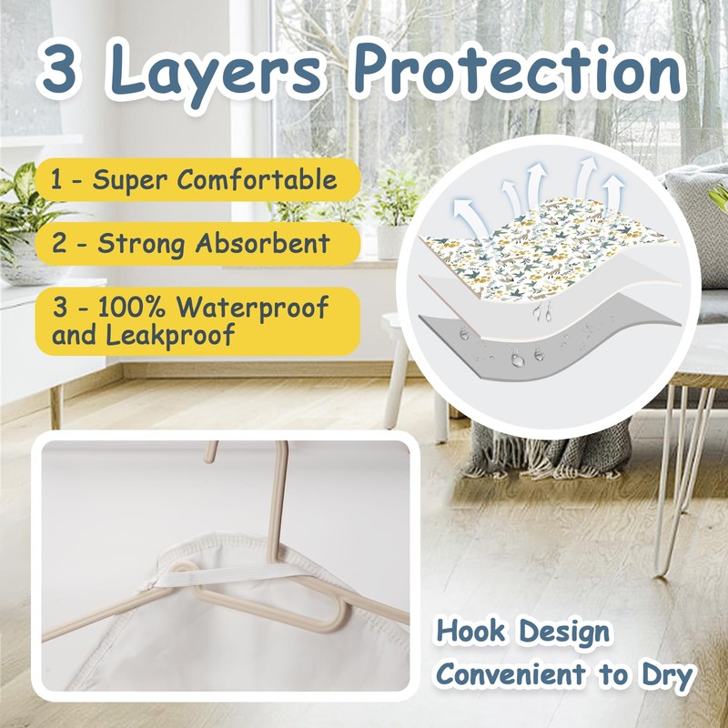 - 3-Layer Leakproof Protection: The top layer instantly absorbs liquids, the middle layer locks in moisture, and the waterproof PEVA bottom layer prevents leaks. Say goodbye to messy surprises and hello to a dry, clean surface—even during blowouts!