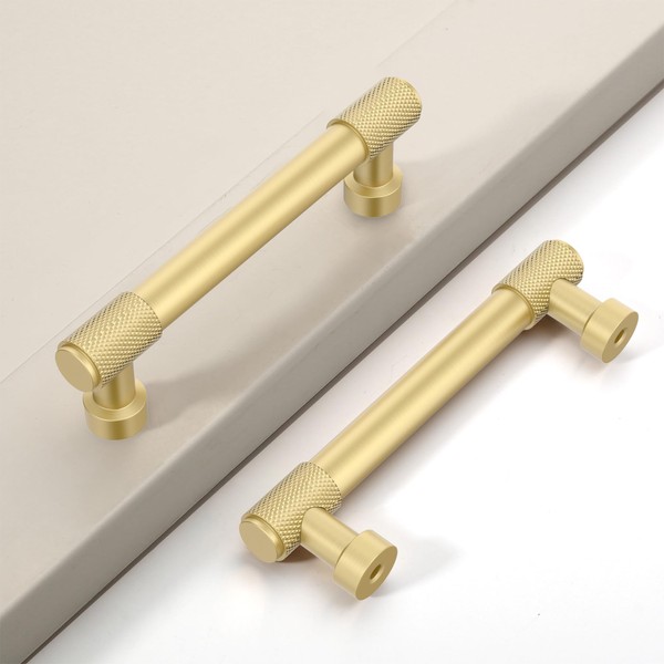 Coinkoly 10 Pack 3.75"(96mm) Brushed Gold Cabinet Pulls Knurled Kitchen Cabinet Handles Drawer Pulls Cupboard Hardware for Cabinets